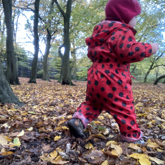 Ruth was six months old when the first lockdown came into effect. Our daily walks were spent in the woods, where Ruth would gaze up at the trees and clouds from her cosy spot in the sling. As the seasons changed, I watched her explore the flowers and grass, play with her shadow in the summer sun, and wait for the blackberries to ripen so she could smash them in her tiny fists. Then she learned to walk and a new set of joys revealed themselves: climbing tree stumps and benches, crunching through the leaves, stomping in puddles.